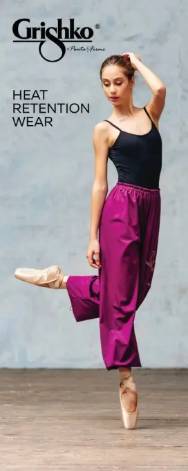 A nova coleção HEAT RETENTION WEAR foi projetada com a fusão de materiais de alta tecnologia e das necessidades dos dançarinos. Com o novo tecido revestido de membrana, você pode minimizar facilmente o tempo necessário para o aquecimento. O microclima é preservado de forma eficiente entre a pele e o tecido, o que garante um aquecimento mais rápido, mantendo-se flexível e confortável.
