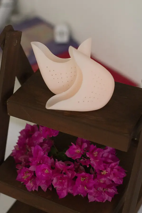 – Cuidados recomendados: Lave à mão com detergente neutro e deixe secar completamente ao ar. Pode ser levemente polvilhado com pó de talco após a secagem.